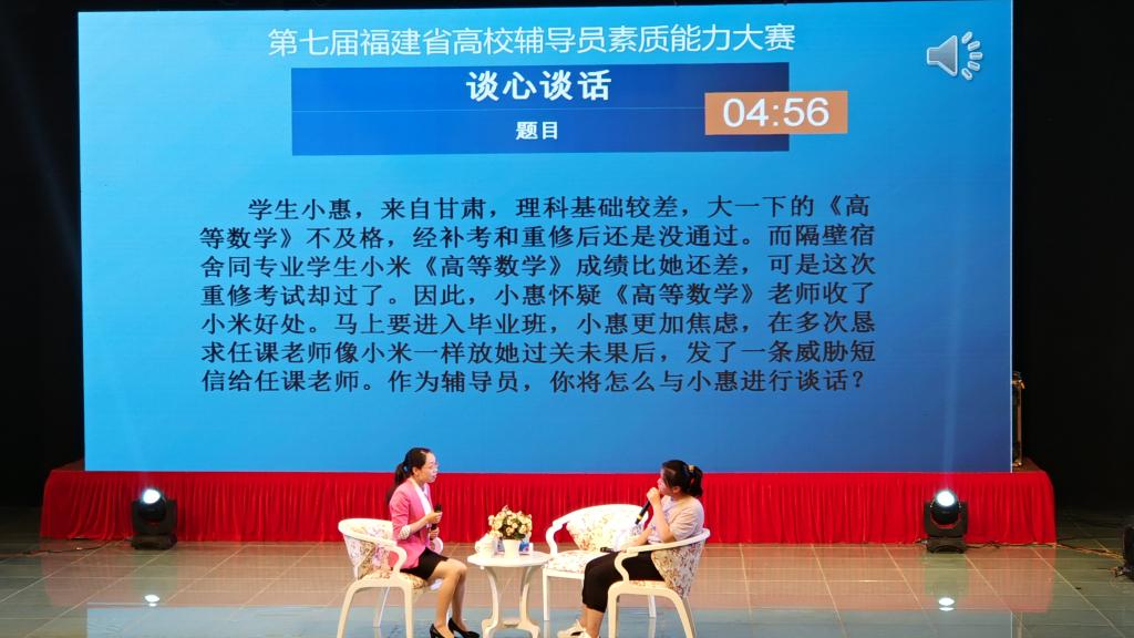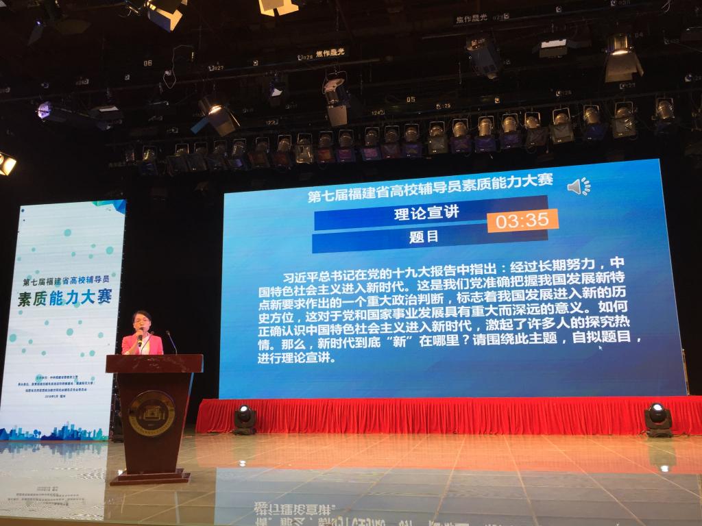5月7日-8日,由中共福建省委教育工委主办的第七届福建省高校辅导员素质能力大赛在福建师范大学旗山校区举行,我院辅导员张芳老师代表学校参赛并荣获三等奖。