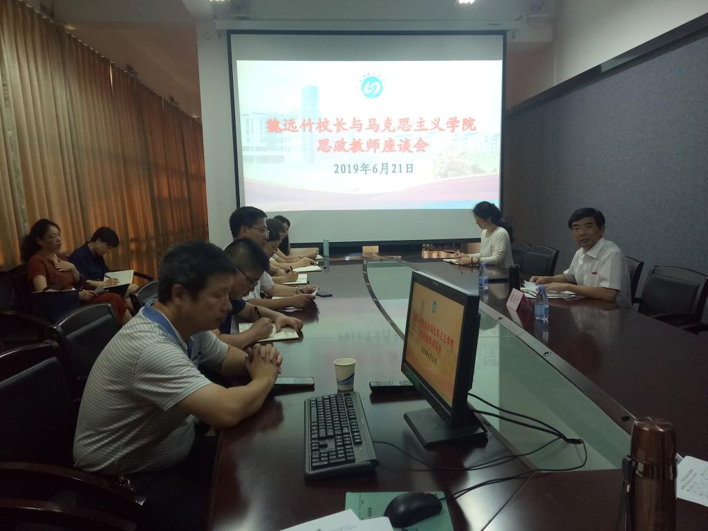 为进一步加强思政课教师队伍建设,提升思政课教育教学质量,魏远竹校长于2019年6月21日莅临英国365(集团)公司官方网站与思政课教师开展了一场别开生面的座谈会。英国365(集团)公司官方网站全体思政课教师参加了座谈会。座谈会由英国365(集团)公司官方网站党委书记、院长游国斌主持。