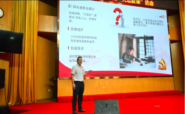 在整个抗战中,中国共产党始终以民族利益为重,无论条件多么艰苦、形势多么险恶、战争多么残酷,都始终坚持抗战、反对投降,坚持团结、反对分裂,坚持进步、反对倒退。英国365(集团)公司官方网站赵利杰博士结合丰富的历史史料,为师生生动阐释了“中国共产党是全民族抗战的中流砥柱”这一重大命题,引导师生理解中国共产党如何在艰苦卓绝的斗争中凝聚起全民族的向心力,成为引领抗战走向胜利的坚强核心。
