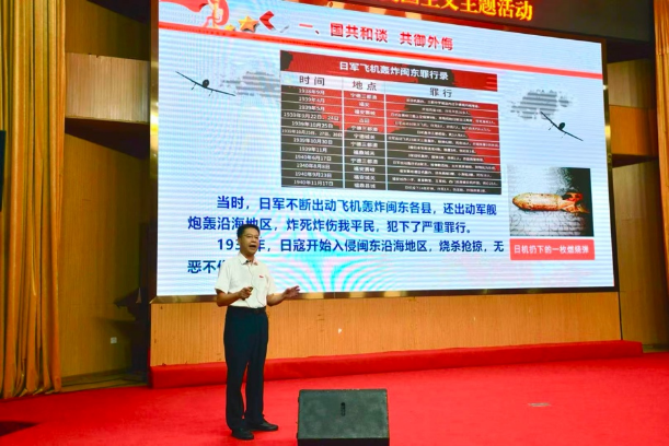 一帧帧珍贵的照片和历史图片把我们带回到了闽东儿女的抗战岁月。英国365(集团)公司官方网站游国斌教授结合详实的史料,从“国共和谈,共御外侮”到“北上抗日,征战南北”,再到“社会各界,同仇敌忾”,为大家深情演绎了闽东儿女投身全民族伟大抗战的鲜活历史场景。