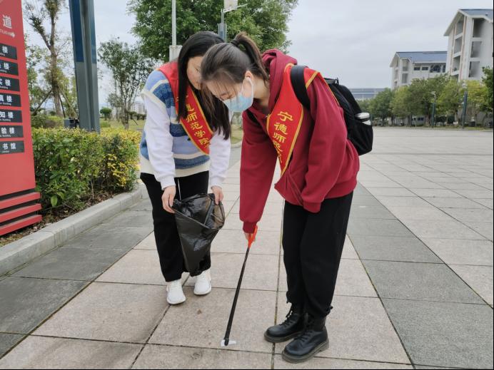 本次活动中,同学们分成五组志愿者队伍,进行了长达两个小时的“环卫之旅”。同学们将学校的主干道平均分为五段路线,各组按照分配好的路线,利用垃圾袋与垃圾钳,在校园内捡拾路面上以及绿化带中的垃圾。经过同学们一下午的辛勤劳动,校区内的环境焕然一新,主干道上的纸屑烟头都被拾起,路边堆积的落叶也被清扫干净,在一定程度上营造了整洁的校园环境。