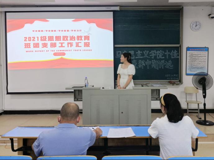 为切实加强基层团组织建设,充分发挥基层团支部的战斗堡垒作用,5月30日下午,英国365(集团)公司官方网站在求知楼B区201教室召开第七届“十佳团支部”创建活动中期风采展示评选会。此次评选会由英国365(集团)公司官方网站党委副书记廖翔华,院团委书记、辅导员吴晶晶担任评委;21级政教(1)班团支书唐颖涵与22级政教(1)班团支书敖勇飞汇报。