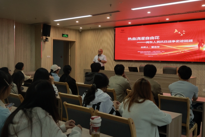 随后,学生代表庄严朗诵陈毅元帅诗句《梅岭三章》,表达了革命先烈坚定不移的理想信念和视死如归的英雄气概。最后,雷志华馆长带领同学们走进报告厅,以“热血浇灌自由花——闽东人民抗日战争史迹回顾”为题作专题报告。雷馆长围绕“日侵闽东,历史罪证”“八闽之东,抗日救亡”“社会各界,爱国抗日”等三个部分展开阐述,运用详实史料和图片讲述闽东军民团结御侮的英勇壮举,回顾闽东社会各界众志成城、共赴国难的感人历史。报告会以闽东革命者黄双惠诗句“拼将民族血,灌溉自由花”做结尾,雷志华馆长激励青年学生们要铭记历史、珍爱和平,讲好闽东故事,担当时代使命。