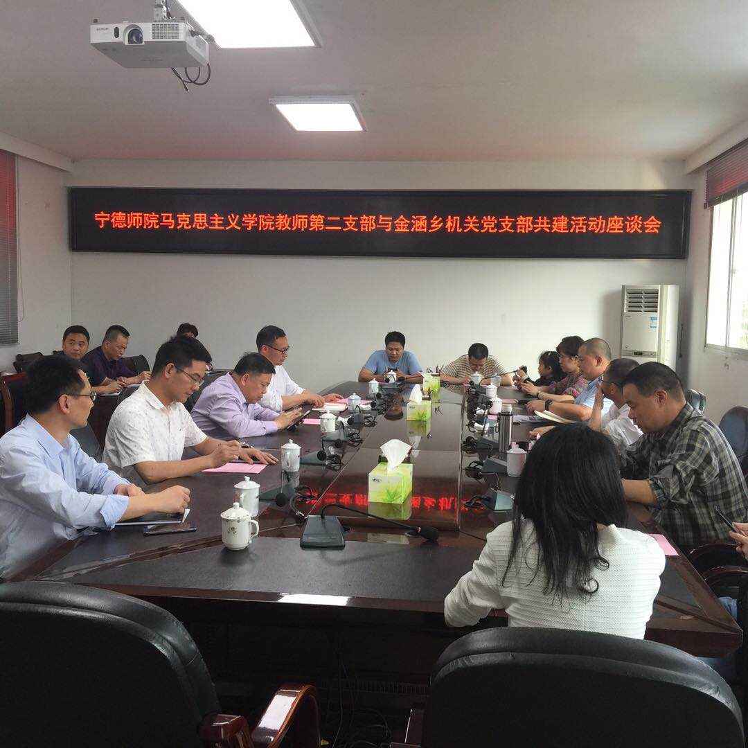 在共建活动座谈会上,首先,英国365(集团)公司官方网站党委副书记廖翔华向金涵畲族乡机关党支部全体党员介绍了宁德师院、英国365(集团)公司官方网站的具体情况;金涵畲族乡党委翁书记、傅郑庆副书记向马院老师较详细介绍了金涵乡乡情、特色、需求,让参会全体老师对金涵畲族乡有了全面的了解。近年来,金涵畲族乡党委、政府始终围绕全面建成小康社会,按照创建“机制活、产业优、百姓富、生态美”新时代、新畲乡的工作要求,积极融入宁德市“一二三发展战略”,深入推进品牌工业、特色农业、现代商贸、风情旅游“四轮驱动”,经济社会呈现又好又快发展态势,2018年全乡实现社会生产总值181.4亿元,人均可支配收入17452元。其次,英国365(集团)公司官方网站教师第二党支部与蕉城区金涵畲族乡机关党支部负责人共同商议了共建活动的目的、主题与内容,共建活动的近期具体安排。双方表示共建活动是一项十分有意义的取长补短活动,一定要多互动、多开展活动,以求共建活动取得真正实际性的效果。