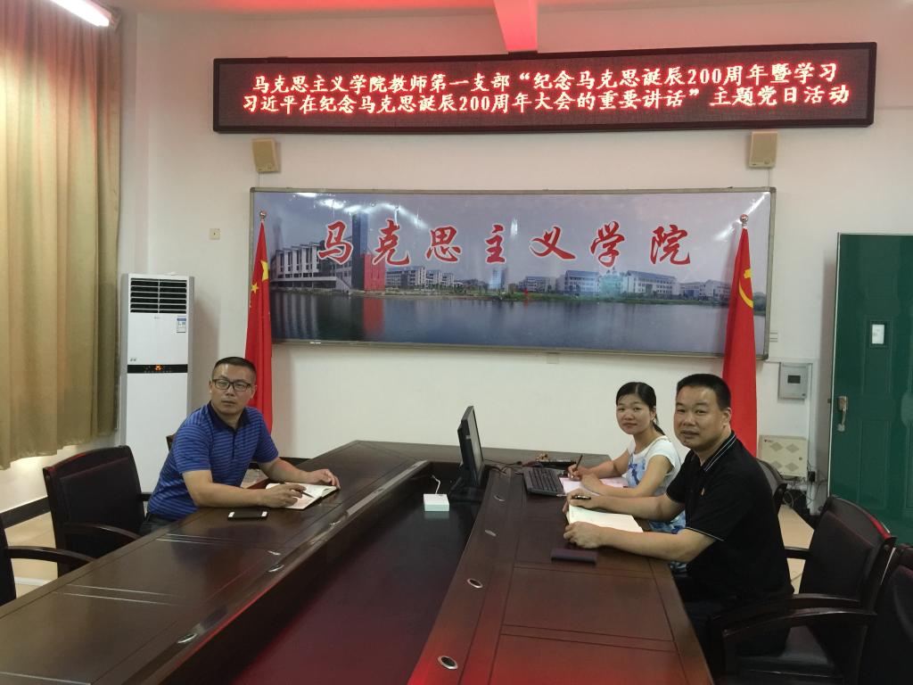 本次活动共有三项议程:一、学习习近平在纪念马克思诞辰200周年大会的重要讲话;二、观看央视专题对话节目《马克思是对的》第1集—《你好,马克思》;三、学习讨论。在对文件充分学习和观看视频的基础上,支部成员进行简单热烈的现场讨论。