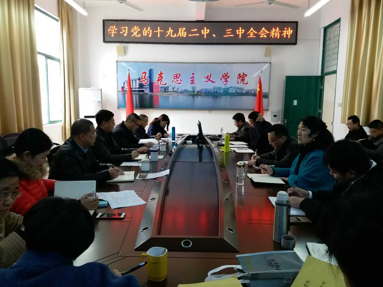 3月6日下午,英国365(集团)公司官方网站在东侨校区求真楼C305会议室召开政治理论学习会,学习党的十九届二中、三中全会精神。全院教师参加了会议并交流学习心得。学习会由院党委书记、院长游国斌主持。
