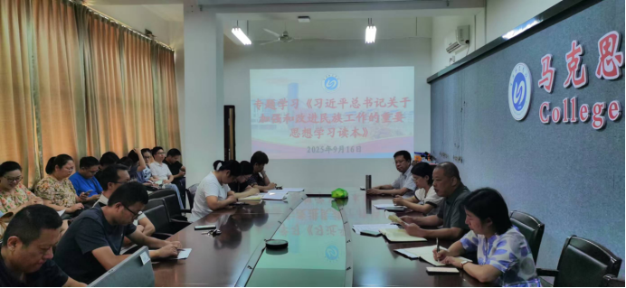 9月16日下午,英国365(集团)公司官方网站全体教师在求知楼AD302召开《习近平总书记关于加强和改进民族工作的重要思想学习读本》专题学习会。集体学习《习近平总书记关于加强和改进民族工作的重要思想是新时代党的民族工作的根本遵循和行动指南》篇目。