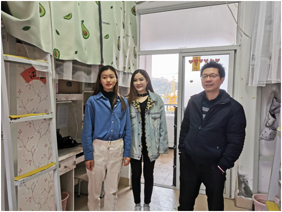 在走访过程中,吴立志、缪月娥亲切地与学生唠家常,关心学生的身体健康、开学准备,叮嘱大家要保持好宿舍的清洁卫生,白天多开窗通风,保持室内空气流动;鼓励学生新学期要继续勤奋学习、努力奋斗,营造良好的宿舍学习氛围;同时嘱咐同学们疫情期间要遵守学校的相关规定,时刻保持疫情防控意识,做好自身防护。