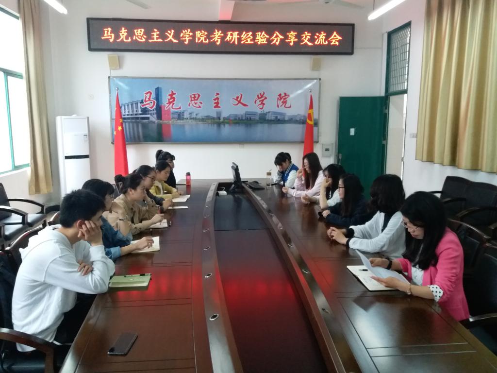 为激发学生的考研积极性,协助解答备考学生复习中的疑惑。4月27日马克思主义在求真楼C305举办考研经验分享交流会。由14级成功考取研究生的同学,给有意向考研的同学进行经验分享和交流。辅导员张芳出席本次交流会。
