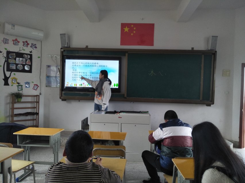在音乐班的教学中,5名同学组成的小组,配合老师教授孩子们认识音乐节符,掌握节拍。在教室中,同学们在拍打桌子和拍手掌的过程中,模仿音乐节拍,怀着博爱之心帮助孩子们掌握知识,促使孩子们更快更有效地理解知识。志愿服务队的成员们活跃于教室之内,密切关注孩子们的学习情况,使每一名孩子们都能得到关心,从而在课堂上可以怀着愉悦的心情学习更多的知识。