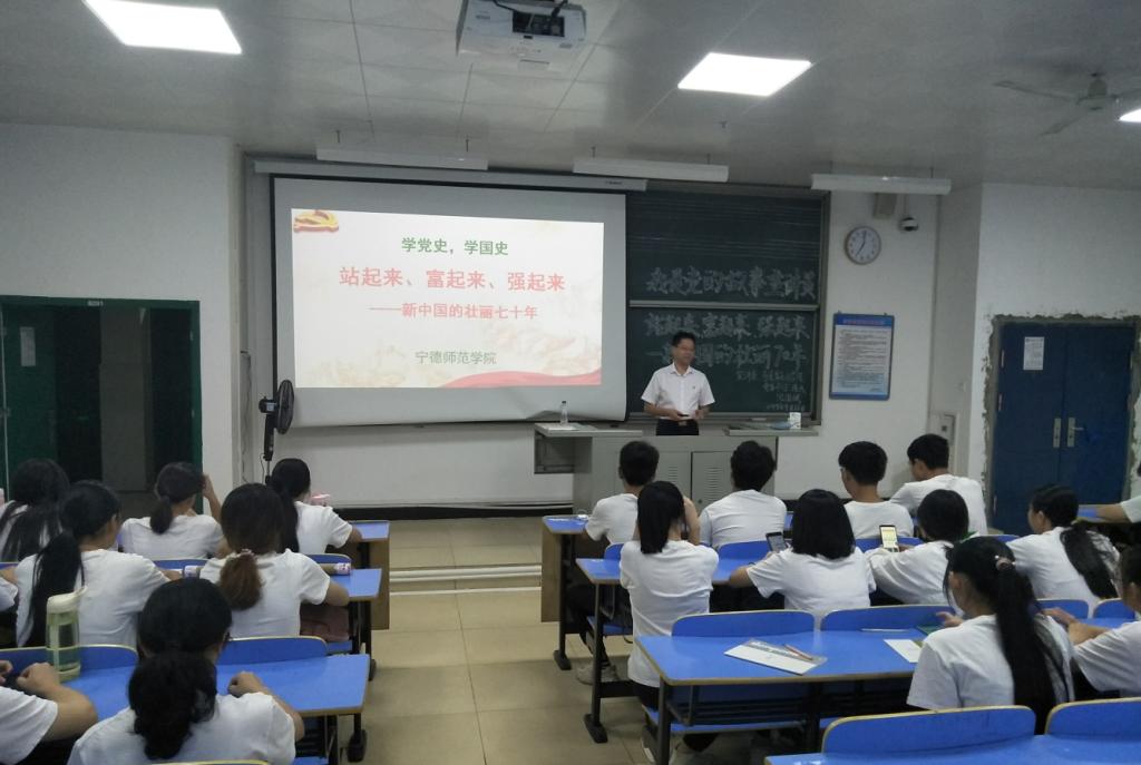 9月27日晚,英国365(集团)公司官方网站党委书记、院长游国斌走进2018级思想政治教育班级,为同学们开展“我是党的故事宣讲员”微团课活动,本次微团课主题为“站起来、富起来、强起来——新中国的壮丽七十年”。