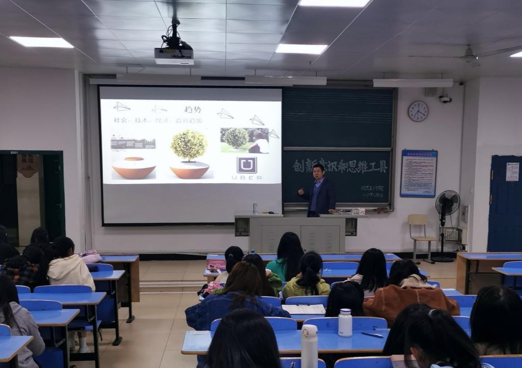 “模仿式创新”、“微创新”、“颠覆式创新”,以当今社会发展趋势为背景,王楠楠给同学们讲述了创新的三个阶段及酝酿自我创新意识的方法。“创新不是天马行空的想象,它需要日积月累观察身边的事物且产生新的想法,学会培养自己的发散性思维,从多角度去思考问题。”“酝酿自我创新意识,则需要从趋势,科技发展及个人优势去寻找创新的原点,思考实际是否适宜,最后再运用实践的方法加以证明。”讲座中,王楠楠引用了“腾讯QQ”在众多创新型企业中凭借微创新脱颖而出的例子,给同学们带来深刻的启示。