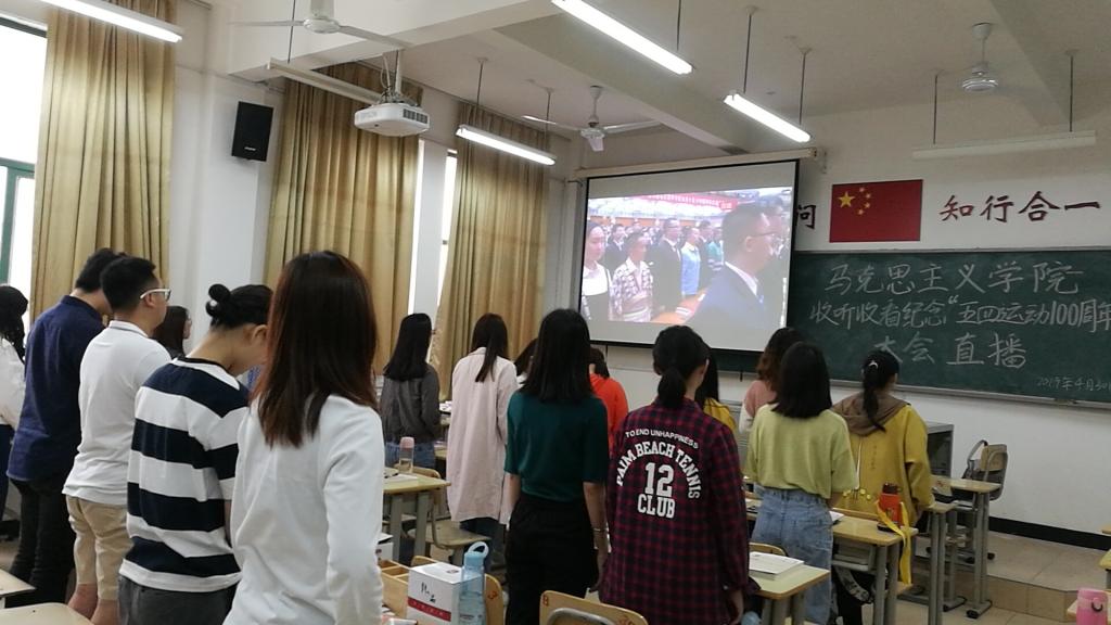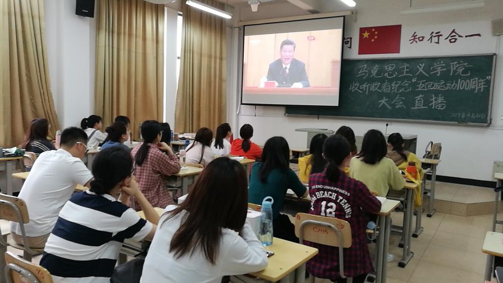纪念五四运动100周年大会于2019年4月30日上午10:30在人民大会堂举行。中共中央总书记、国家主席、中央军委主席习近平将出席大会并发表重要讲话。英国365(集团)公司官方网站全体师生热切关注纪念大会,在求知楼B204教室集中观看大会直播,认真学习习近平总书记在纪念五四运动100周年大会上的重要讲话。