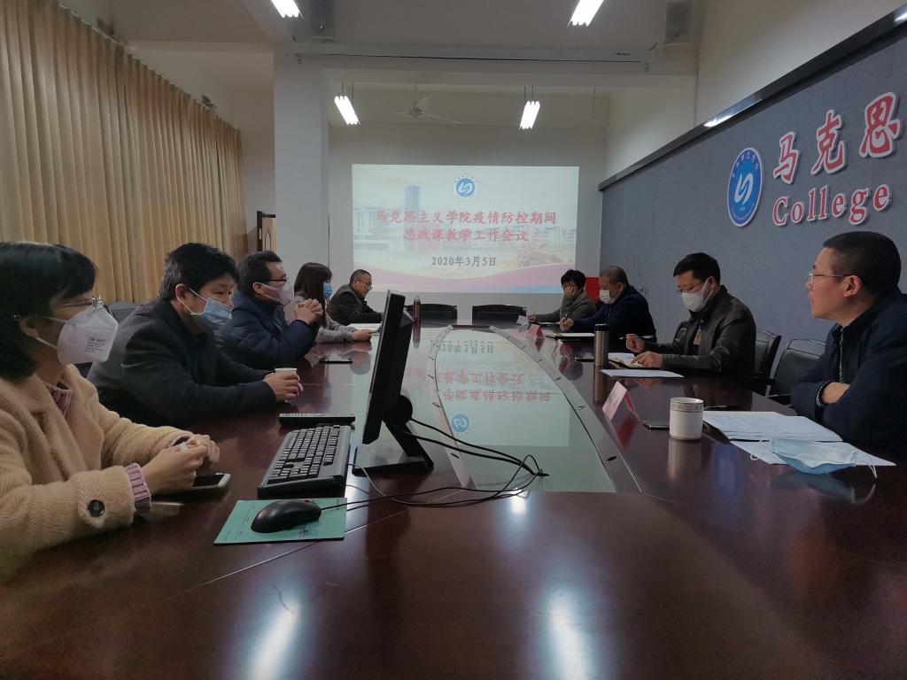2020年3月5日下午,英国365(集团)公司官方网站在求知楼D302会议室召开新冠肺炎疫情防控期间思政课教学工作会议,学院领导班子、各系部负责人、各教研室主任参加了会议,会议由游国斌院长主持。