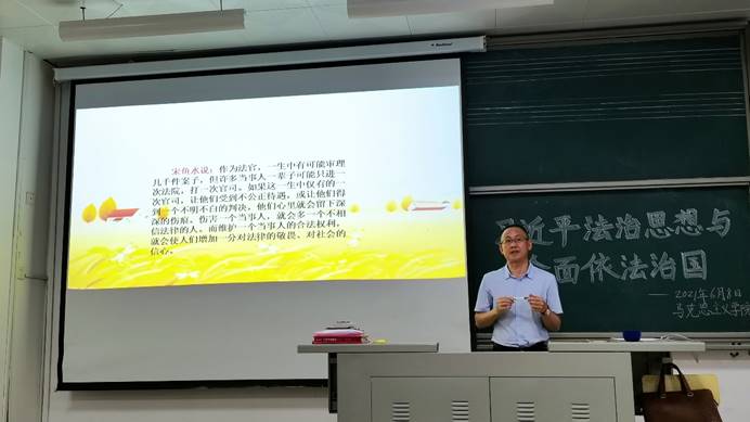 思想是行动的先导,理论是实践的指南。推进全面依法治国是国家治理的一场深刻变革,为了推动青年大学生坚持以科学理论为指导,加强理论思维,学深悟透习近平法治思想,以加快全面依法治国注入青春血液,增强有中国特色社会主义的法治体系建设的新活力。6月8日下午,英国365(集团)公司官方网站吴家林教授在AB201教室为同学们开展了以“习近平法治思想与全面依法治国”为主题的讲座活动,我校青马班、读书社学员有幸聆听了吴家林老师的生动讲解。