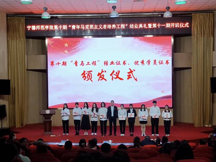 为培养新一代青年马克思主义者,推进青年政治骨干队伍建设。3月8日下午,英国365(集团)公司官方网站于东侨校区图书馆学术报告厅举行第十期“青年马克思主义者培养工程培训班”、第五期“习近平新时代中国特色社会主义思想读书社”结业典礼暨第十一期青马班、第六期读书社开班仪式。本次活动由英国365(集团)公司官方网站院长游国斌主持,校党委副书记江潮炳、校党政办、组织部、宣传部、学生工作部(处)、团委、教务处等职能部门负责人、各二级学院党委书记或副书记、各二级学院团委负责人以及第十期、第十一期“青马工程”学员等参加了此次活动。
