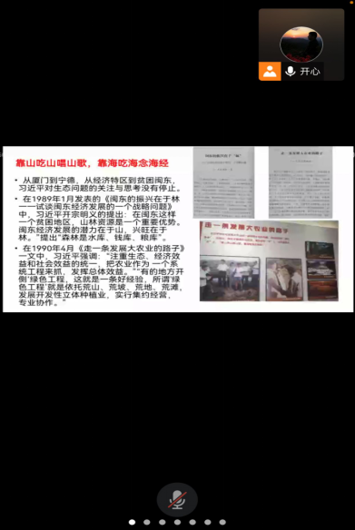 本次教学示范课由习近平新时代中国特色社会主义思想教研室主任陈开梓副教授主讲。陈开梓老师此次线上示范课的主题是“习近平新时代中国特色社会主义思想概论”课程的第十一专题“建设社会主义生态文明”。在示范课上,陈开梓充分利用学习通与腾讯会议融通直播功能;线上便捷的教学资源调取与利用功能;班级研讨、抢答、即测即检的互动功能等实现了课堂内容重构、课堂教学重塑、课堂活动变革,实现了思政课在云端如何讲哲理、学理和事理的目标。