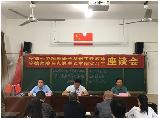 9月23日下午四点,宁德七中召开宁德七中领导班子及班主任教师暨宁德师院英国365(集团)公司官方网站实习生座谈会,8名实习生一同参加了此次座谈会。