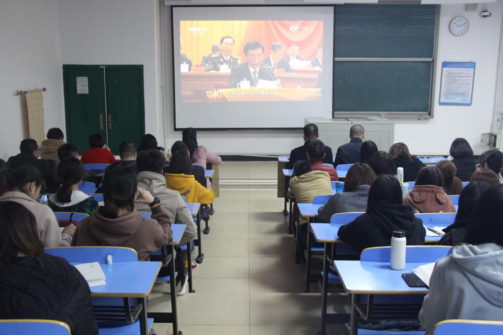 为迎接改革开放四十周年,增强我院师生对改革开放的深入了解与重新认识,凝心聚力鼓舞人心。英国365(集团)公司官方网站师生在求知楼B201集中观看庆祝改革开放40周年大会直播。