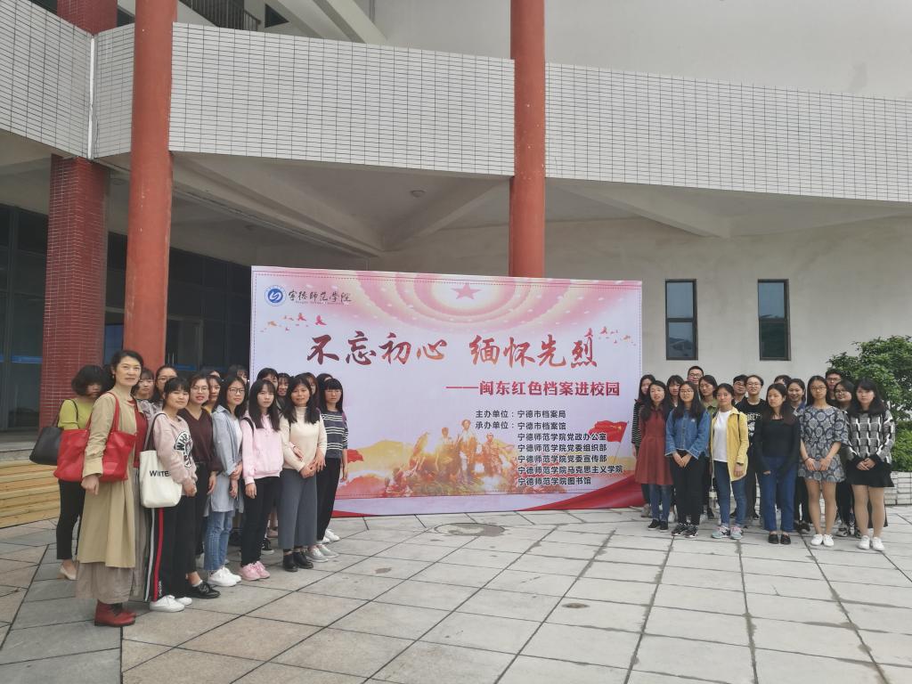 2018年4月25日上午,英国365(集团)公司官方网站组织师生到校图书馆观看由宁德市档案馆主办的《不忘初心,缅怀先烈——闽东红色档案进校园》专题图片展。英国365(集团)公司官方网站党委书记、院长游国斌教授带队,范世珍老师、辅导员张芳老师以及15级全体学生参加活动。