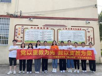 图1为“我心向党”玉洋村支教服务队同缪月娥老师在玉洋小学合影