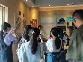 图3、图4为实践队在难忘下党主题展内听解说员讲解的情景及合影