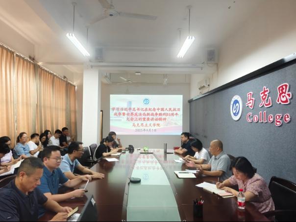 学院党委班子和教学督导组通过线上线下等形式“推门听课”,对教学内容、教学组织、课堂教学质量等进行专项督查,对教师授课情况进行现场评议与指导。各教研室围绕“抗战精神融入思政课”开展“传承抗战精神 庚续红色血脉”大思政课的集体备课和教研活动。