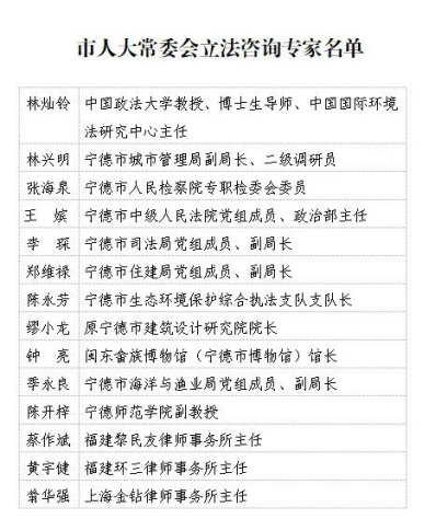 为在地方立法中推进全过程人民民主,推动科学立法、民主立法、依法立法,发挥专家学者在地方立法工作中的智力支持作用,日前宁德市人大常委会经主任会议研究决定聘请我院陈开梓副教授等14位同志为新一届宁德市人大常委会立法咨询专家,聘期五年。
