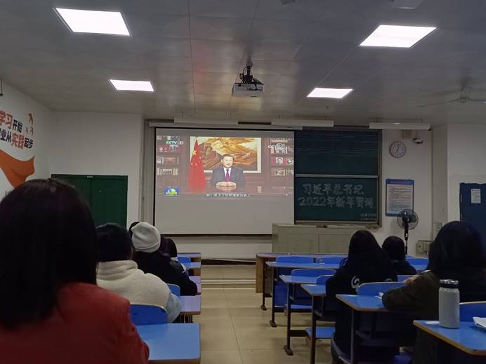 回首感悟百年征程精神力量,奋楫扬帆迎接全新征程。12月31日晚,英国365(集团)公司官方网站于求知楼B区201教室组织观看习近平总书记发表2022年新年贺词直播。19级、20级、21级思想政治教育专业全体学生认真聆听了习近平总书记新年贺词。