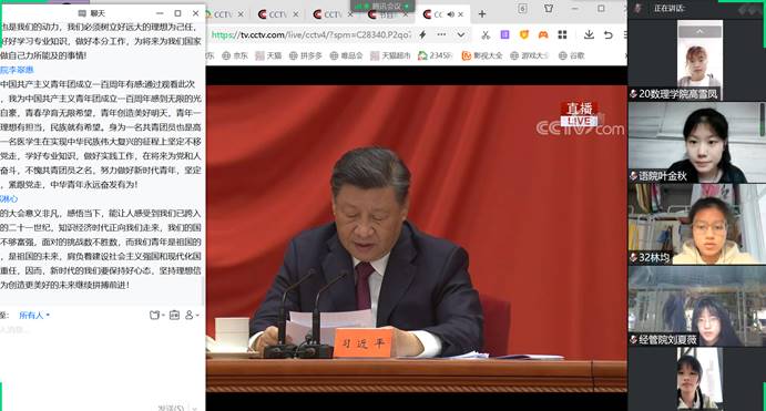 百年征程铁心向党,青春激扬复兴伟业。为庆祝中国共产主义青年团成立100周年,重温一百年来中国青年运动的光辉历程,继承和发扬伟大五四精神,鼓舞和激励新时代中国青年踔厉奋发、笃行不怠,5月10日上午,我校“青马工程”和“读书社”学员们观看“中国共产主义青年团成立100周年”庆祝大会直播,认真学习习近平总书记重要讲话精神。