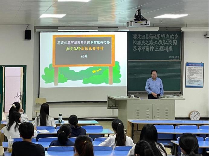 为深入贯彻落实习近平总书记关于学校思政课建设的重要讲话精神,加强闽东革命传统教育和爱国主义教育,深化学生对“闽东革命精神”内涵的理解,4月11日下午,英国365(集团)公司官方网站于AB201开展“要走出具有闽东特色的乡村振兴之路必须弘扬闽东革命精神”主题讲座。此次讲座由刘雄教授主讲,英国365(集团)公司官方网站部分学生认真聆听此次讲座。