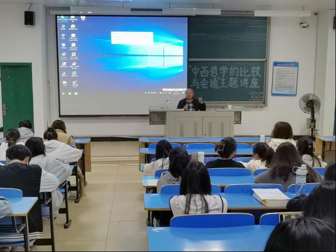 为深入学习理解中西方传统哲学的相关知识,呼吁广大青年放眼世界,取其精华,不断促进中国哲学研究科学化,4月25日下午,英国365(集团)公司官方网站于AB201开展“中西哲学的比较与会通”主题讲座。此次讲座由周维功教授主讲,英国365(集团)公司官方网站部分学生、校青马班与“读书社”部分成员认真聆听此次讲座。